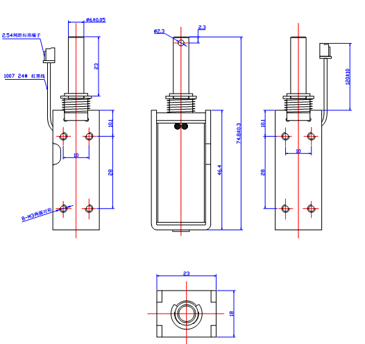 四,推拉式電磁鐵部分連接線和連接滑竿: