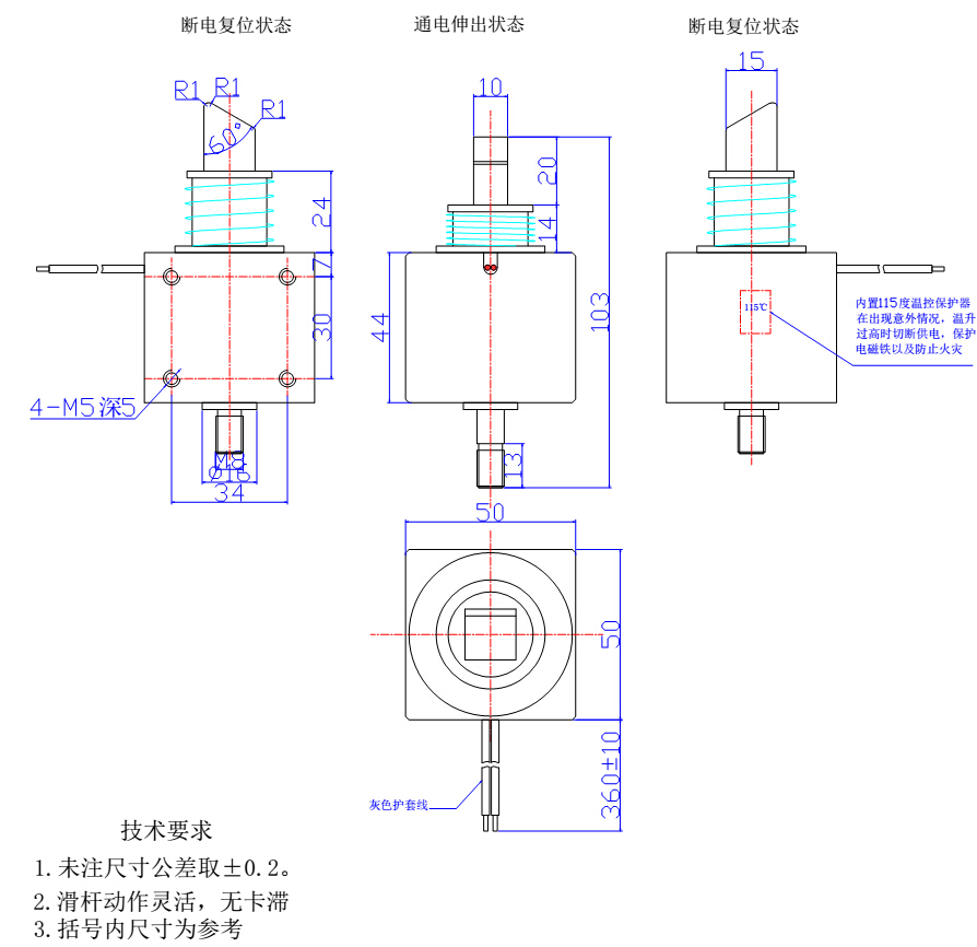 二、高精密門鎖推拉式電磁鐵的具體參數(shù)