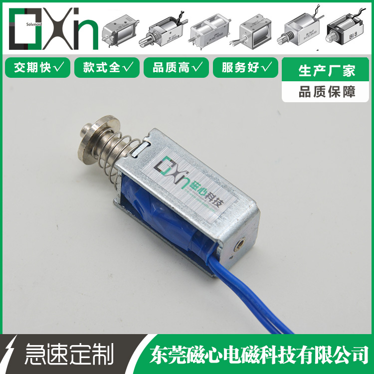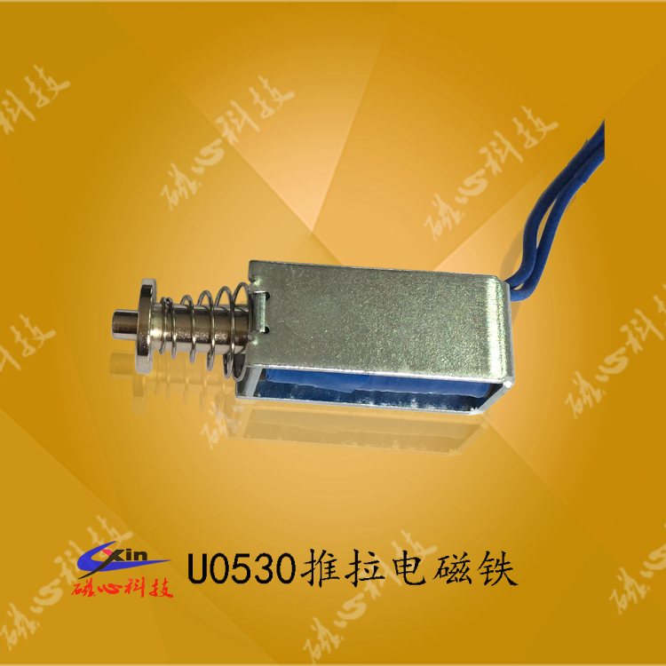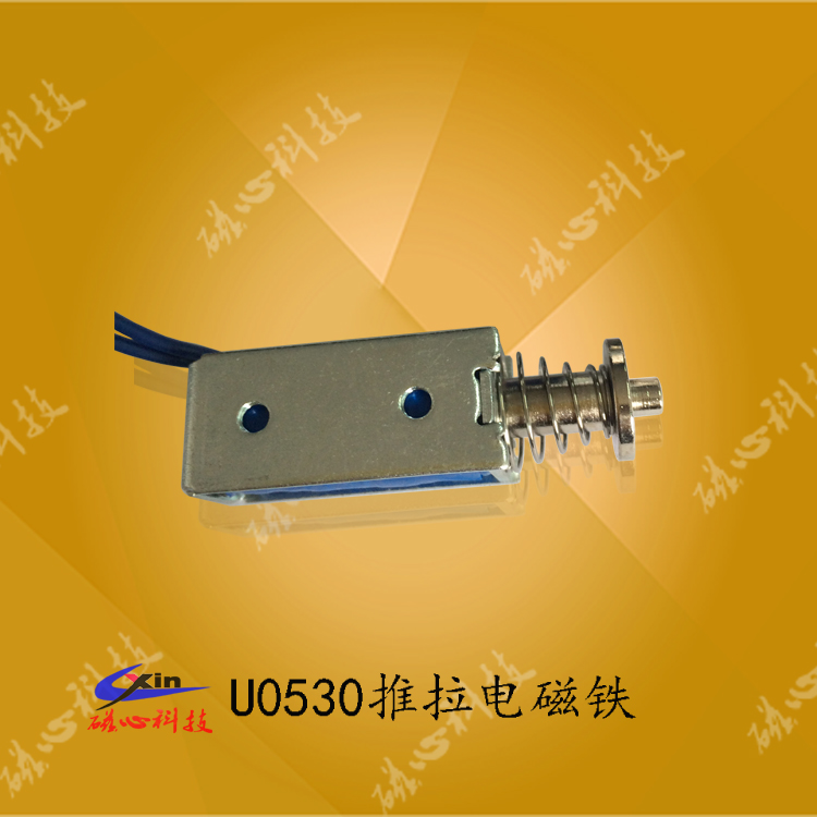 U0530 框架電磁鐵磁心科技大批量生產的一款微型推拉式電磁鐵,框架電磁鐵U0530可以做成推式電磁鐵和拉式電磁鐵,產品具有體積小、安裝方便、成本低被市場廣泛用于自動化設備、自動玩具、信報箱和儲物柜等