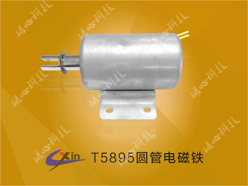 圓管電磁鐵T5895  是磁心科技專為自動化設備定制的一款推拉式電磁鐵,產品的整體結構為圓管型,焊接支架。圓管式電磁鐵T5895直徑為58mm,高度為95mm,行程可以達到30mm以上,力量可以做到10KG以上。